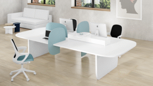 • Modular: Projetadas para flexibilidade e adaptabilidade, as secretárias modulares permitem que personalize a sua configuração conforme necessário. Elas podem incluir peças intercambiáveis, como prateleiras, gavetas e unidades de armazenamento;